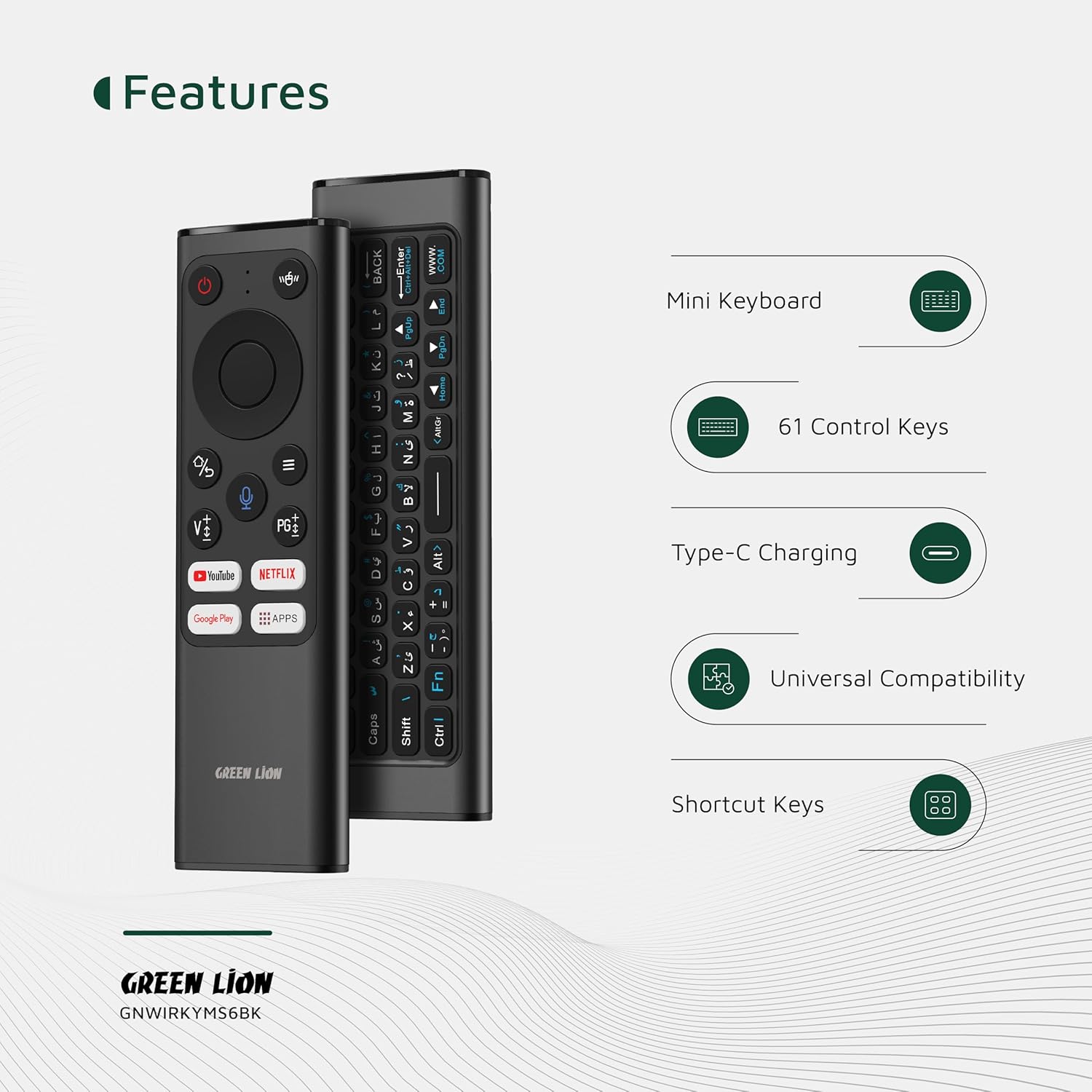 Green Lion Rechargeable Wireless Universal Remote for Samsung TVs Air Mouse & Keyboard (EN/AR), Voice Assistant, Compatible With Android TV Box, PC, Computer, Projector, Android/Windows/MacOS/Linux