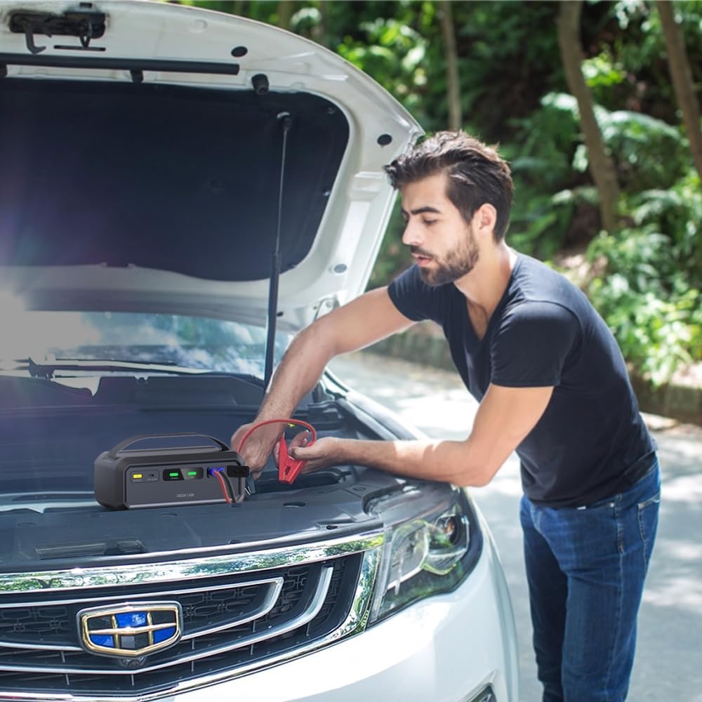 The Green Lion Super Capacitor 12V Jump Starter presents an extremely powerful and reliable alternative for emergency engine-starting. Resistance against drops and bangs is provided by means of a sturdy ABS + PC shell casing, and with 2.7V/500F×5 supercapacitors installed, it is capable of giving a peak of 1000A max-current. This jump starter works with 12V cars, SUVs, pickup trucks, agricultural equipment, motorcycles, and marine outboards, supporting gas and diesel engines of up to 7L and 4L, respectively. The jump starter can be charged by a variety of power sources, including car clips and USB-C, with charging ranging from as low as 3 minutes to as high as 25 minutes, depending on input. The life expectancy of super capacitors approaches 10 years; their working temperature range is from -40 to 70°C, specializing in robustness. Some important features worth noting are the 3-minute rapid charging, boost and manual start modes, and LED status indicators alongside the convenience of charging via a 27W USB-C QC port.