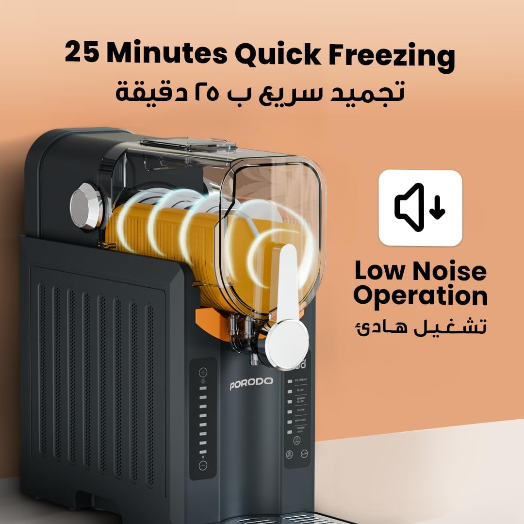Porodo Multi-Function Slushie Maker 200W, Milk-Shakes/Ice Cream/Frappe Maker, 2.6L Capacity, 25MIN Quick Freezing, Intuitive Controls Panel, Efficient Blending, Instant Frozen Drinks