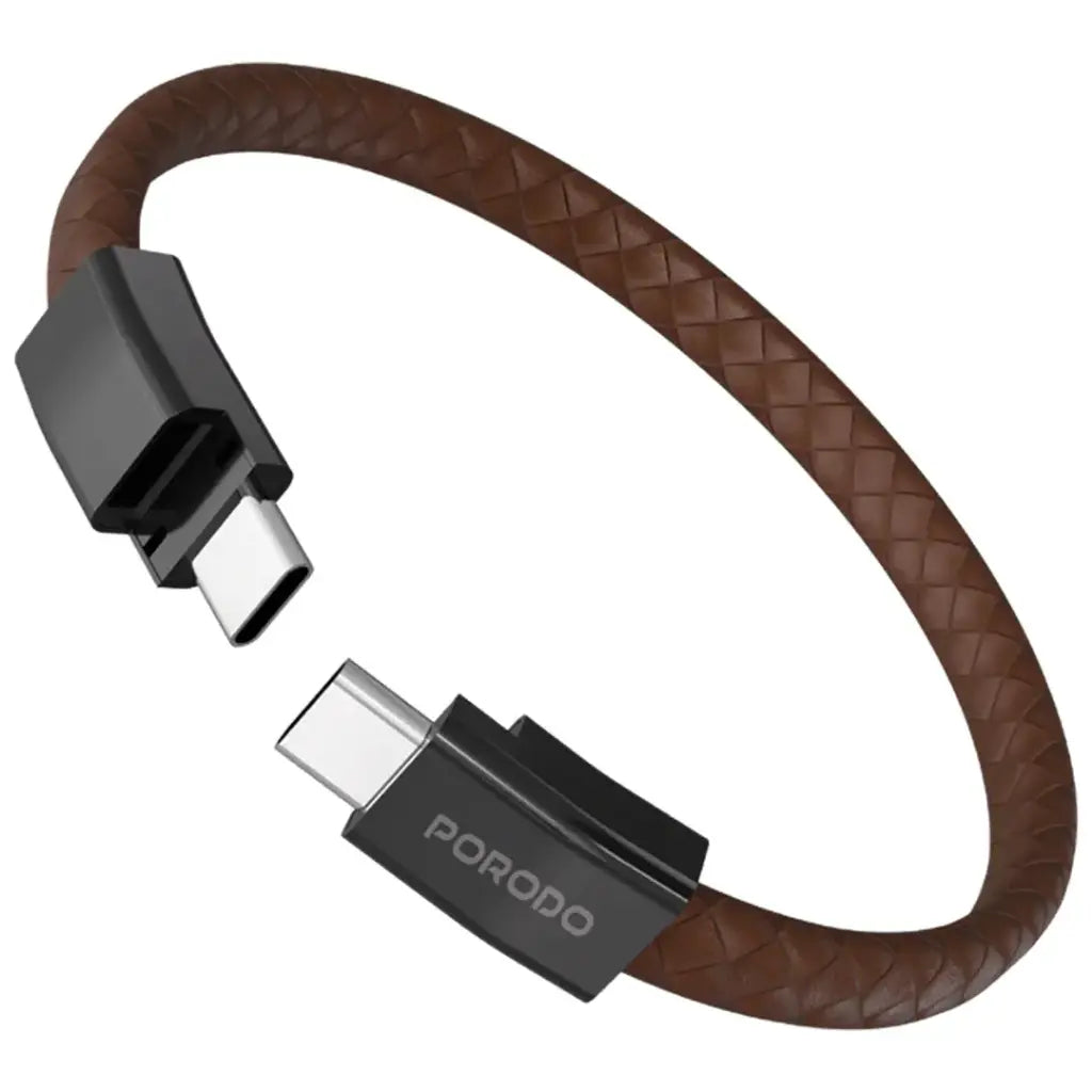 Porodo USB-C to USB-C Wristband Charging Cable – PD 60W, Magnetic Clasp – Black / Brown